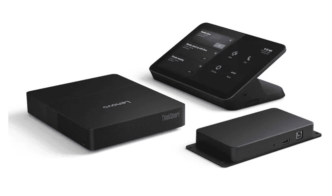 The system typically pairs with the Lenovo IP Controller, a 10.1-inch multi-touch control panel that allows users to start meetings, manage calls, and share content directly from the meeting table.